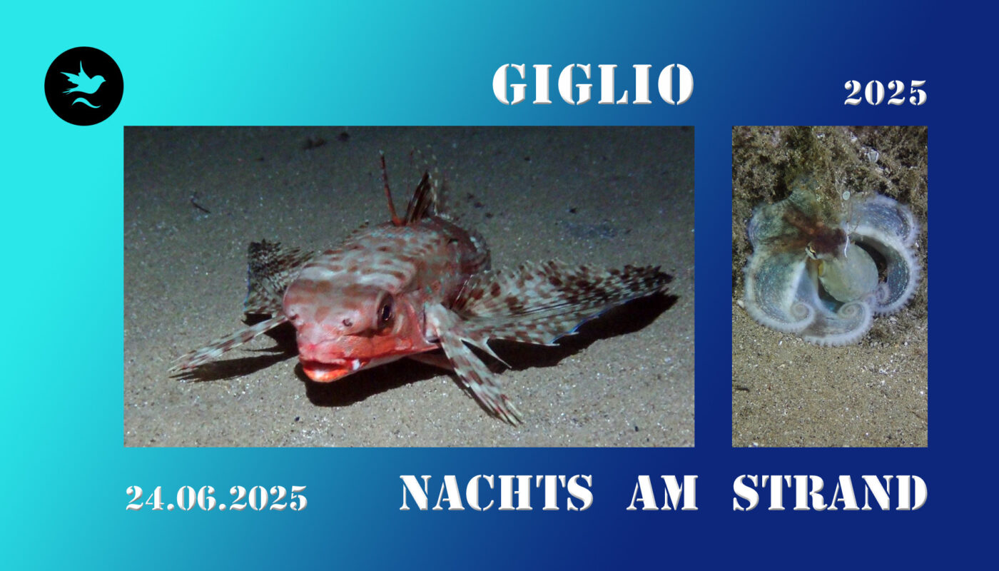 Wenn die Sonne untergeht, beginnt unter Wasser eine ganz eigene Welt zu leben. In der Bucht von Campese auf der Insel Giglio tauche ich ein in die nächtliche Stille – und werde schnell eines Besseren belehrt: Überall regt sich etwas.